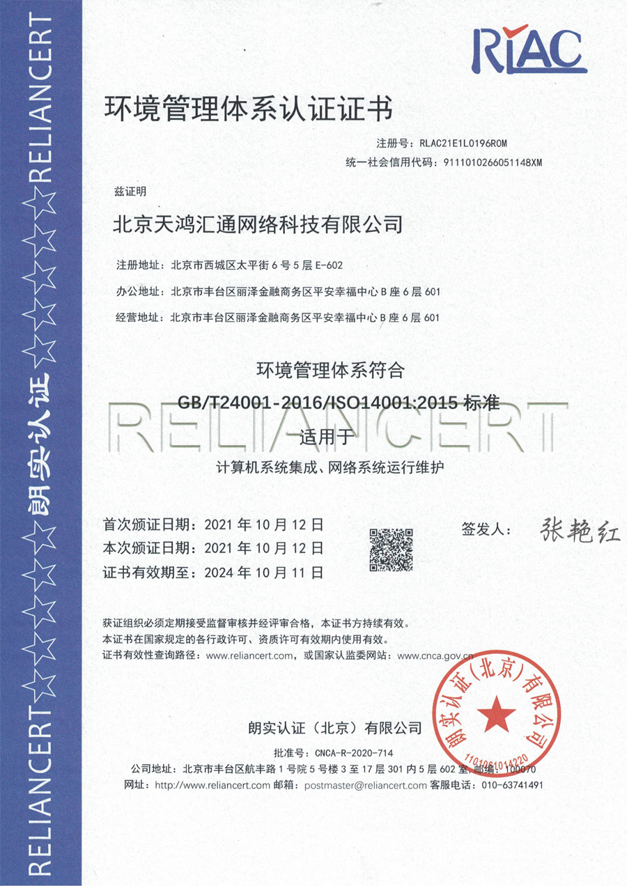 ISO14001(環境管理(lǐ)體(tǐ)系認證)